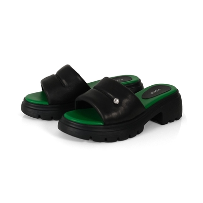 viina 羊皮寬帶厚底拖鞋-黑