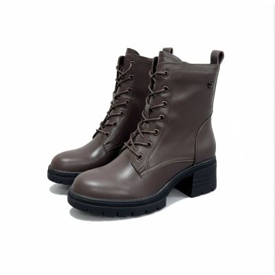 viina素面羊皮厚底短靴-深咖