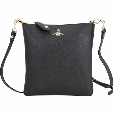 Vivienne Westwood 星球標誌防刮皮革斜背方包(黑色)