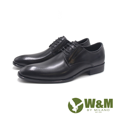 W&M(男)真皮尖頭綁帶俐落剪裁皮鞋 男鞋-黑色