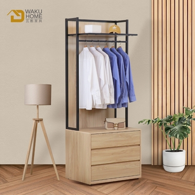WAKUHOME 瓦酷家具Morandi原橡木工業風2.6尺開放式三抽衣櫃-寬80*深55*高200cm