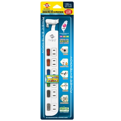 【威電】CK-2662-6 2孔6開6座 加大間距 延長線 6尺/1.8M(180度任轉插頭 過載斷電 )$40489折