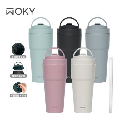 【WOKY 沃廚】(買1送1) 二代渾圓杯-雙層陶瓷750ml (含矽膠吸管)