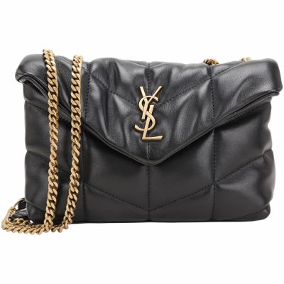 YSL Saint Laurent LOULOU PUFFER TOY 迷你 金字絎縫羊皮信封式鍊帶肩斜背包(黑色)$69,800$85,121