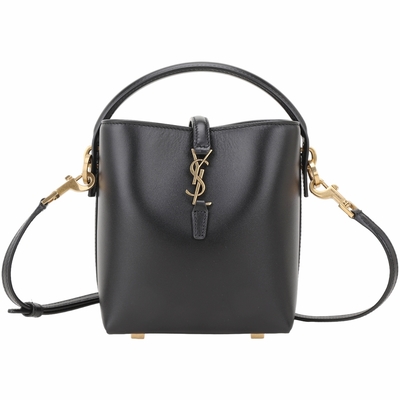 YSL Saint Laurent LE 37 迷你款 滑面小羊皮斜背/手提水桶包(黑色)