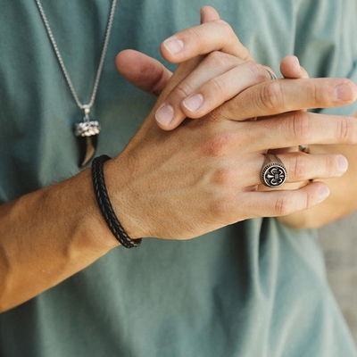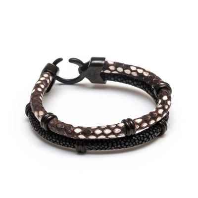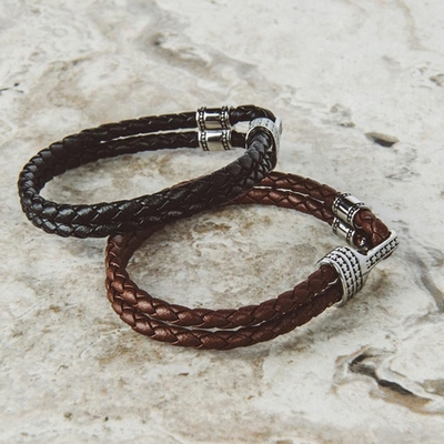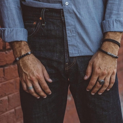 ZENGER 奢華手工雙織皮繩手環-黑X白