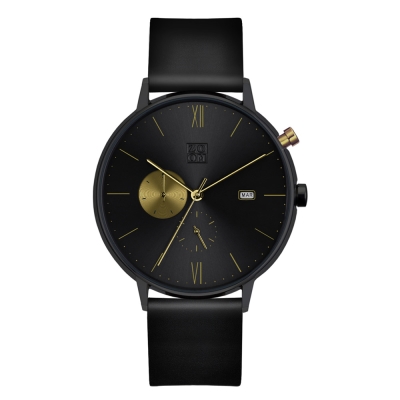 券ZOOM REFINE 7150 純粹雅仕雙眼真皮手錶(ZM7150)-流金黑/44mm
