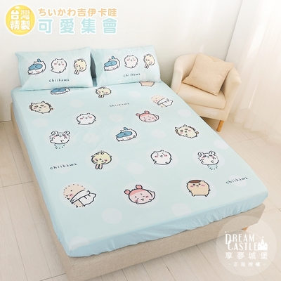 享夢城堡 雙人床包枕套5x6.2三件組-吉伊卡哇chiikawa 小八烏薩奇可愛集會-藍綠$80483折
