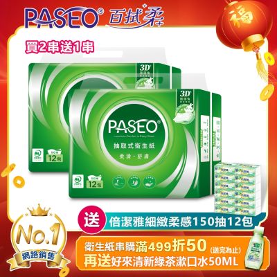 PASEO百拭柔 柔滑舒膚抽取式衛生紙100抽12包/串$159