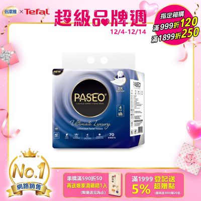 PASEO 3層柔韌舒適抽取式衛生紙PEFC(100抽10包/袋)
