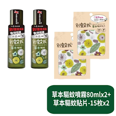 【別蚊我】抗菌草本驅蚊噴霧80mlx3+草本驅蚊貼片-15枚x2