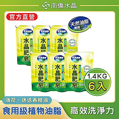 【南僑水晶】防霉清爽型水晶肥皂液體洗衣精補充包1400gX6包(薄荷草香/天然成分/低敏/迷迭香)