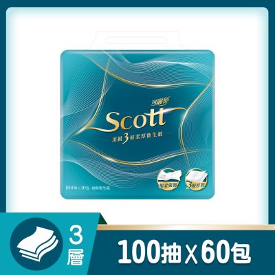Scott可麗舒 頂級 3 層柔厚抽取衛生紙 100抽X10包X6串 箱購