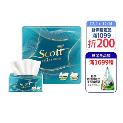 Scott可麗舒 頂級 3 層柔厚抽取衛生紙 100抽X10包X6串 箱購