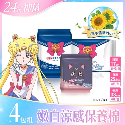 【唯白V.D】美少女戰士Crystal淨嫩透白SOD草本抑菌衛生棉(MIT台灣製/向日葵花香/草本涼感/54倍瞬吸)4包組