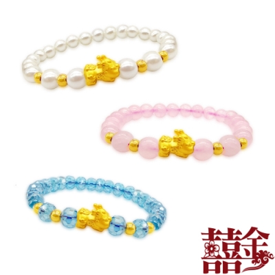 囍金 幸福事事順利萌寶貔貅 999千足黃金轉運珠手鍊(6選1)