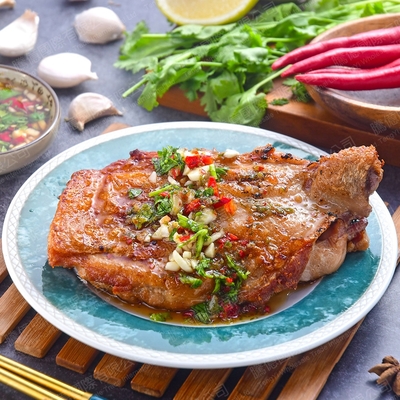 任-大成 泰式椒麻雞(雞腿210g/包;椒麻汁60g/包;調味肉品,需加熱調理)$119