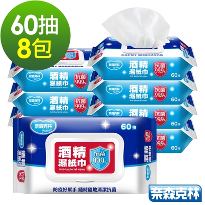 奈森克林 酒精擦濕巾附蓋60抽8包/組