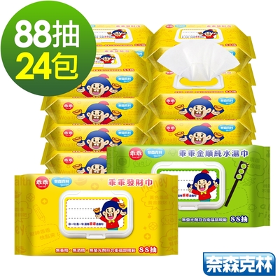 奈森克林 乖乖純水濕紙巾88抽x24包(綠-金順/黃-發財巾)