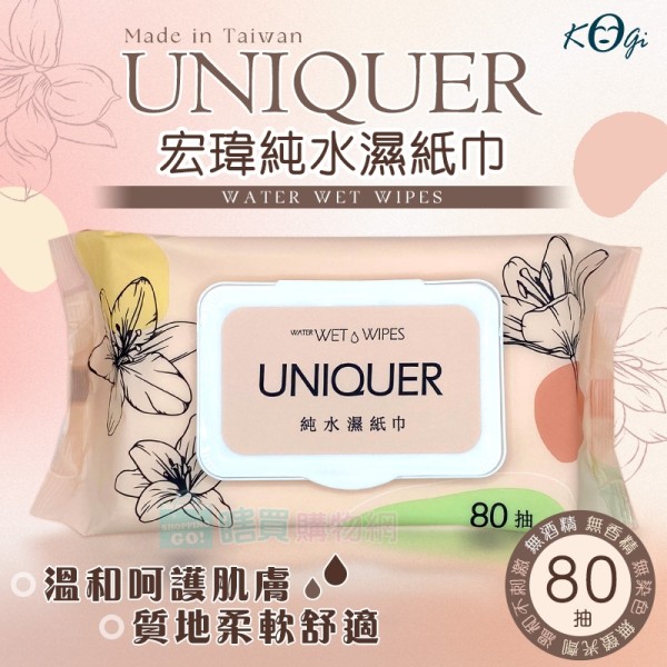 商店【UNIQUER】台灣製 宏瑋純水濕紙巾(80抽有蓋) 太后駕到 純水濕巾 嬰兒濕紙巾 寶寶適用 潔膚濕巾
