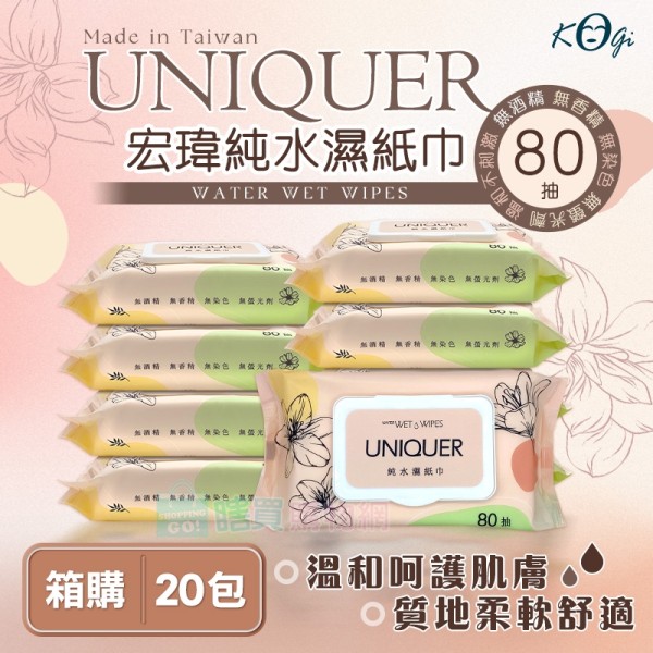 商店【UNIQUER】箱購20包 台灣製 宏瑋純水濕紙巾(80抽有蓋) 太后駕到 純水濕巾 嬰兒濕紙巾 寶寶適用