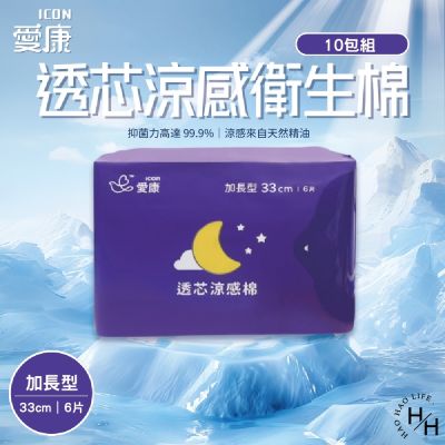 【愛康】 10包組-涼感衛生棉 加長型(33公分x6片x10包)$599