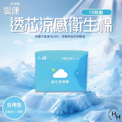 【愛康】 10包組-涼感衛生棉 日用型(24公分x8片x10包)$599