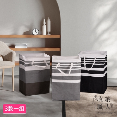 收納職人 日式簡約經典條紋大容量可折疊衣物收納籃/洗衣籃/髒衣籃_3款一組$999