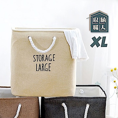 【收納職人】自然簡約風超大容量粗提把厚挺棉麻方型整理收納籃/洗衣籃- XL麻黃$412