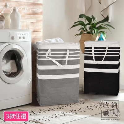 收納職人 日式簡約經典條紋大容量可折疊衣物收納籃/洗衣籃/髒衣籃_3款任選$350