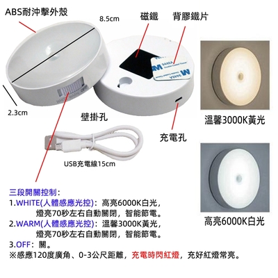 月陽高亮21LED充電式充電插電兩用無段調光磁吸帶開關感應燈小夜燈手電筒(YMM005)