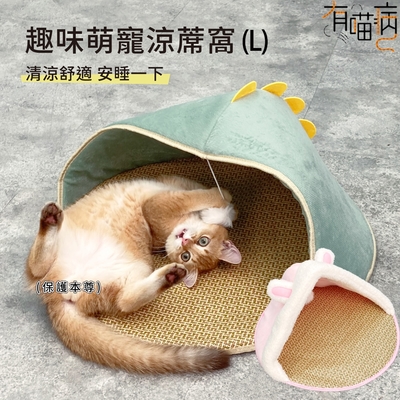 有喵病 半封閉清涼藤席貓窩 L號 (卡通貓窩、寵物睡窩)