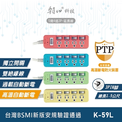 朝日科技 5開4插3P延長線 K-59L