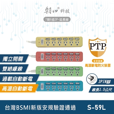朝日科技 7開6插3P延長線 S-59L