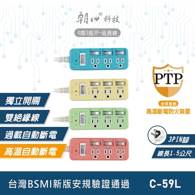 朝日科技 4開3插3P延長線 C-59L