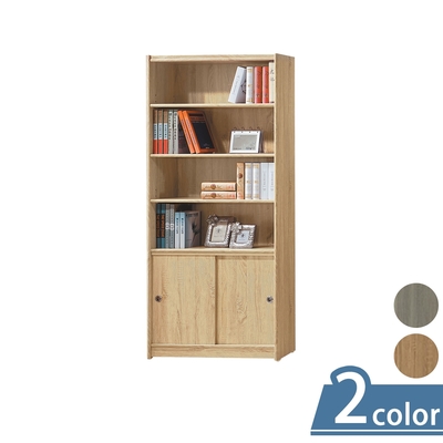 柏蒂家居-德希2.7尺推門/拉門半開放式四格書櫃/4格收納置物櫃/展示櫃(兩色可選-原木色/灰橡色)