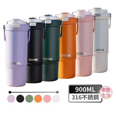 樂豐生活 316不鏽鋼提握雙飲保溫杯 900ml (6色附吸管) 保冷 保溫 手提 双飲 車用 LFlife$680