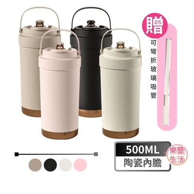 樂豐生活 雙飲陶瓷隨行保溫杯 500ml 贈玻璃吸管 咖啡隨行杯 保溫 保冷 LFlife$550