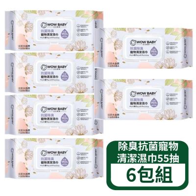 汪汪寶貝-除臭抗菌寵物清潔濕巾(55抽/包x6包)-馥郁花果香