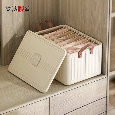 【生活采家】可折疊衣物整理堆疊收納籃 大號7格有蓋 奶油白#135004$459$580