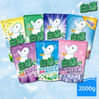 白鴿洗衣精補充包2000g(尤加利/香蜂草/小蒼蘭/棉花籽/抗臭/柔順/麝香 7款任選)$106