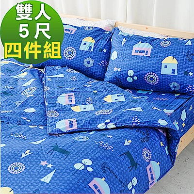 米夢家居-夢想家園系列-工學枕專用100%精梳純棉枕頭布套-深夢藍二入$480