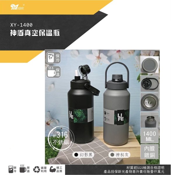 商店美迪達 316不鏽鋼神盾真空保溫保冷瓶1400ml(附吸管)幻影黑 XY-1400