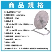 華冠 18吋 鋁葉工業桌扇/電風扇 FT-187