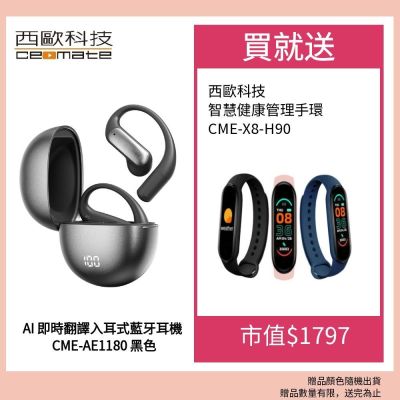 西歐科技 AI 即時翻譯傳導式藍牙耳機 CME-AE1180送西歐科技智慧健康管理手環 CME-X8-H90 三色隨機$1,990