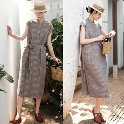 設計所在 獨家高端限量系列 100%極細高密棉色織條紋洋裝(S-L可選)$4,1967折