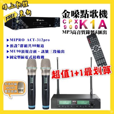 金嗓 超值一起購最划算 CPX900 K1A點歌機+MIPRO ACT-312pro 電容音頭無線麥克風$48,30084折
