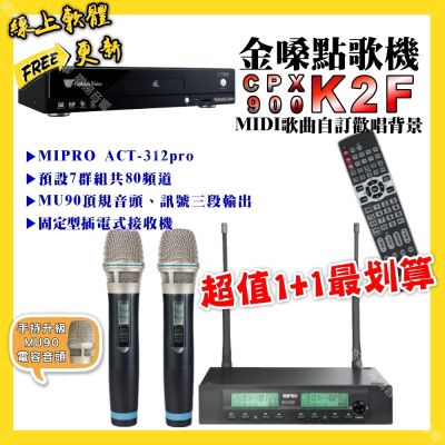 金嗓 超值一起購最划算 CPX900 K2F點歌機+MIPRO ACT-3500 電容音頭無線麥克風$52,92084折