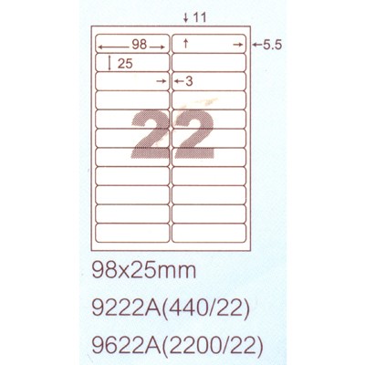 商店阿波羅 98x25mm 切圓角 NO.9222A 22格 A4 雷射噴墨影印自黏標籤貼紙 20大張入