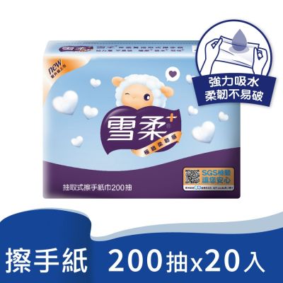雪柔 抽取式擦手紙巾200抽x20入$699